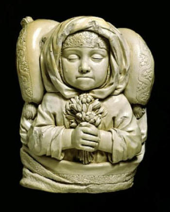 'Lydia Dwight Dead,' from the collections of the Victoria and Albert Museum, which gives this information: 'Lydia Dwight was six years old when she died on 3 March 1674' and 'One of the earliest experiments in European ceramic sculpture, this object was commissioned by the father of the dead child in order to capture her likeness and perpetuate her memory. It was a personal and private sculpture, reflecting the grief of the little girl's family ... '