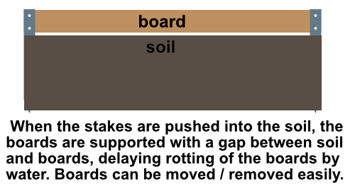 bed-and-board systems in gardens / allotments, with many advantages, including huge flexibility: boards can be quickly removed