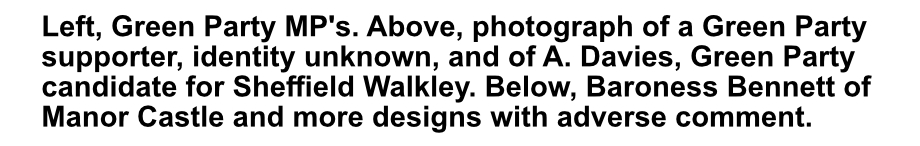 Taking shape, the new page Shambolic Sheffield: Criticism of a police force (SYP), a political party (the Green Party), a university, student encampment and university union, an allotment office, mayor, and more, a project with dispersed material, not to be found on only one page. Below: Interlude 1: Introduction to Shambolic Sheffield and 2: Beanies. The newest page, in preparation: Don't vote for the Green Party. Don't donate to the Green Party.