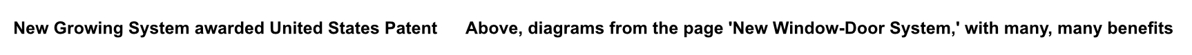 A United States Patent has been awarded to me for my New growing system: 'dual layer structural units' for growing farm crops, with wide-ranging environmental / other benefits. See also Official Patent Document pdf file