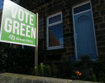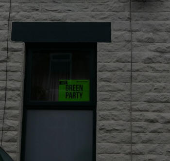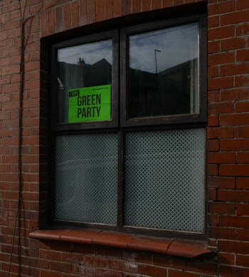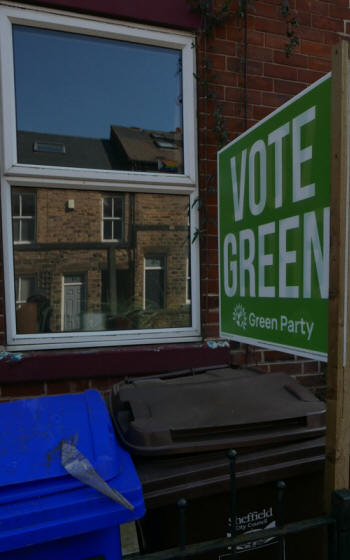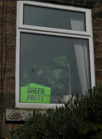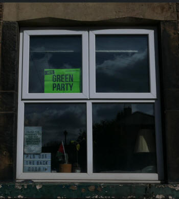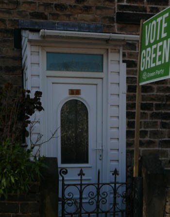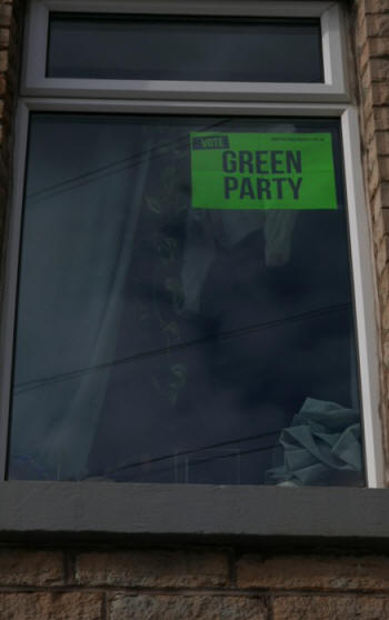 In this column, photographs of Sheffield properties publicizing the Green Party. There are many, many more which I could include but which it would be unrealistic to include, but more will be added.
