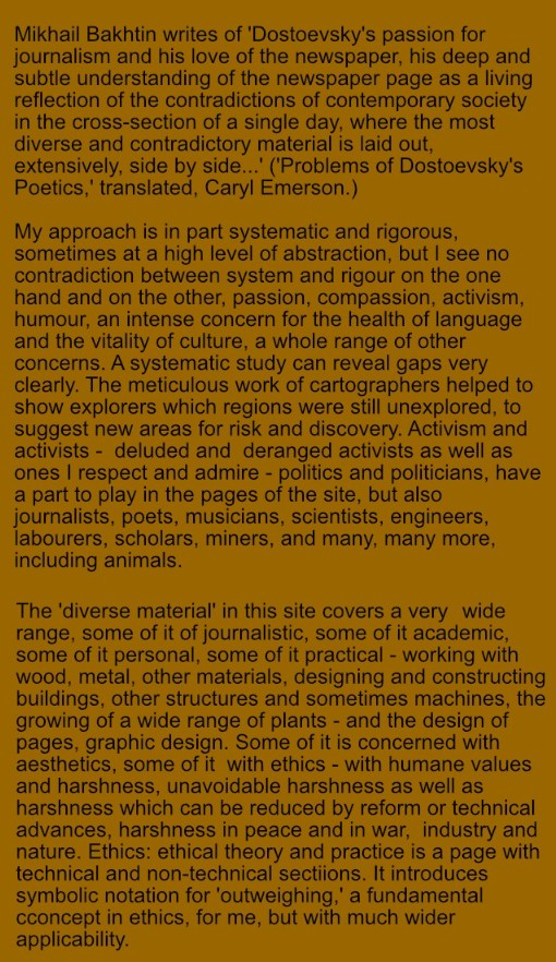 Craig Brandist is a Professor in the School of Languages, Arts and Societies. I find that he has a strong interest in the work of Mikhail Bakhtin and the Bakhtin Circle. I've an interest in the work of Bakhtin. A quotation from his 'Problems of Dostoevsky's Poetics' appears in a section in the lower reaches of the Home Page. For many years, it was in a very prominent position, at the top of the Home Page. It now appears towards the end of the long Home Page. I provide a copy of the material at the end of this section, as 'supplementary material.'