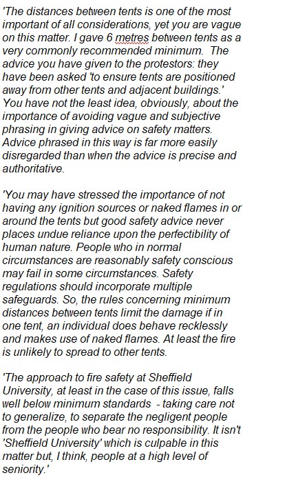 Rob Sykes 'provides strategic and operational leadership to a wide range of services' at Sheffield University.' This is an extract from an email I sent him on 24 May 2024. I sent a coy to the Vice Chancellor. Rob Sykes had emailed me, with some 'improvements' made to fire safety at the encampment. I wasn't impressed.