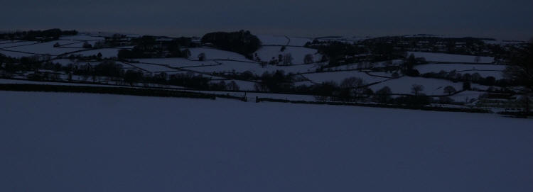 Below, views of snowy fields next to Hangram Lane, near Ringinglow Road, which leads to the Derbyshire border. 2nd week of January, 2025.