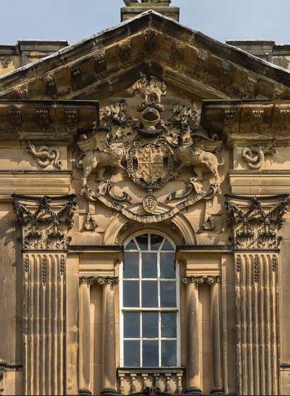 English Baroque architecture is far from common. This is a detail of the Baroque West Front of Wentworth Woodhouse in Rotherham, followed by the expanse, the whole of the West Front.