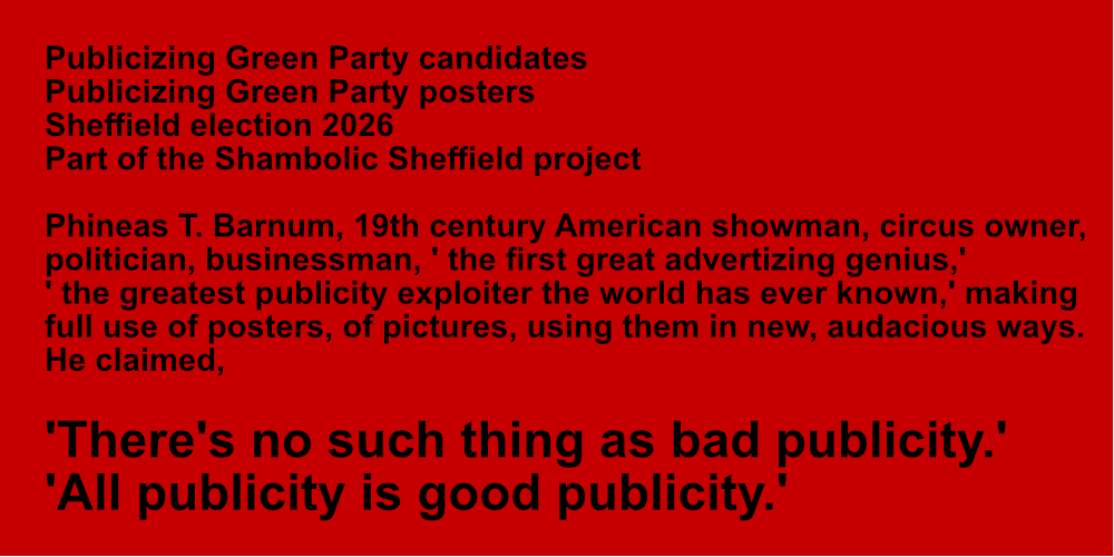 'Shambolic Sheffield' is a project with various pages: Publicizing Green Party candidates .(in the 2026 election), Don't vote for the Green Party. Don't donate to the Green Party and 'Losing the Plot.' Shambolic Sheffield is the Hub Page: criticism of a police force (SYP), a political party (the Green Party), a university, student encampment, allotment office, shop, mayor. On this page, below: Interlude: Introduction to Shambolic Sheffield. Appreciation for Sheffield's hills and valleys (many images): Sheffield Dales.