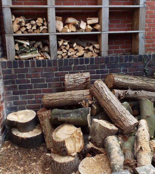 Above, an outdoor project, in the backyard / back garden - a very simple structure for storing wood to be used in a multi-fuel stove. The wood store is in my small back garden. The wood store is constructed from off-cuts of railway sleepers, which support horizontals made from decking boards. The store still has to be finished with oil/varnish after it has dried out. The log sections here still have to be cut into smaller sections for seasoning.