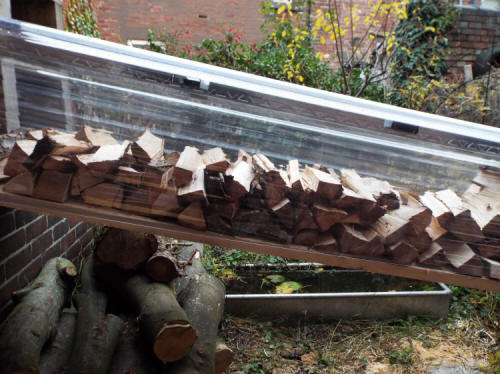 A solar wood store makes use of the greenhouse effect to increase the environmental temperature, and so increase the rate of moisture loss from chopped and sawn wood - the process called 'seasoning.' This is the solar wood store I designed and constructed.