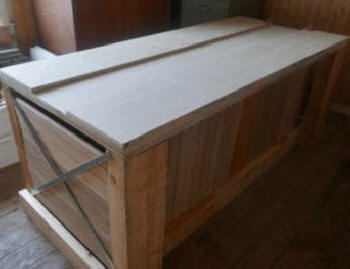 Image 3 shows the storage containers now covered by the same oak components visible on the right of Image 1. The flat area on the right in Image 1 now has two aluminium components. The long flat component is an aluminium folding ramp. When opened and moved, this gives a means of