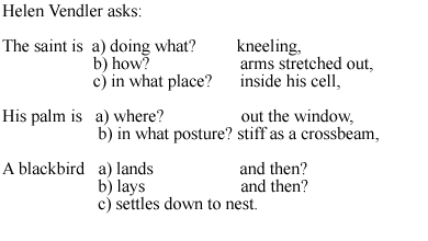 'Well, reading Helen Vendler is always a corroboration. She is like a receiving station picking up on each poem, unscrambling things out of word-waves, making sense of it and making sure of it. She can second-guess the sixth sense of the poem. She has this amazing ability to be completely alive to the bleeper going off at the heart of it, sensitive to the intimacies and implications of the words and your way with them, and at the same time she has the ability to create the acoustic conditions where you can hear the poem best, the ability to set it within a historical context and to find its literary coordinates. And then there is just the sheer undimmed enthusiasm. Helen has been a friend to me as well as a critic, and the friendship has been tonic because all that critical élan comes out in her social self as sheer exhilarating intelligence. The great thing about Helen is not just her literary capacity, it's her sense of honesty, justice and truthfulness. I value these things deeply in her as a person and, naturally, they are part of her verity as a critic.'