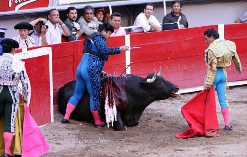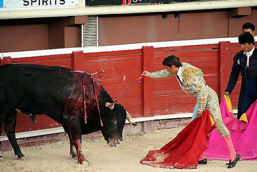 8.06. The matador stabs the bull with the sword intended to kill the bull.