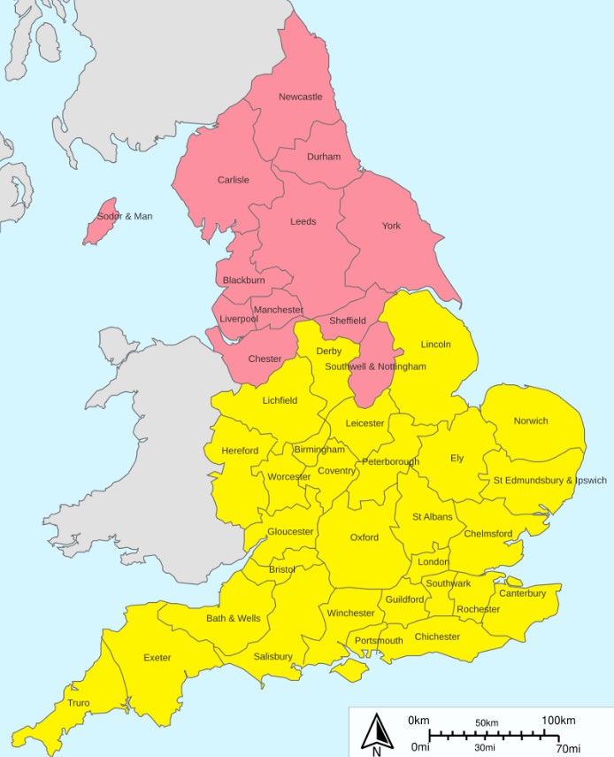 Church of England ... 808 churches ... 29 deaneries ... 284 Church of