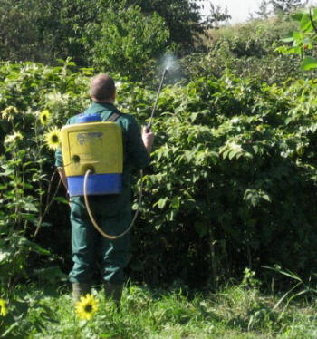 Above, spraying Japanese knotweed with glyphosate at an allotment - not one of my allotments. Japanese knotweed was growing at an allotment very near to mine. It was sprayed with glycophase by Sheffield City Council, the knotweed was eradicated and hasn't regrown.