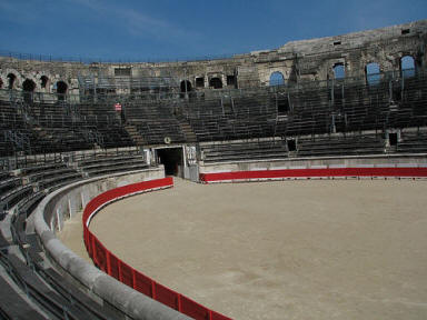 appeared a bullfighting arena in which a blazing sun sank ...'